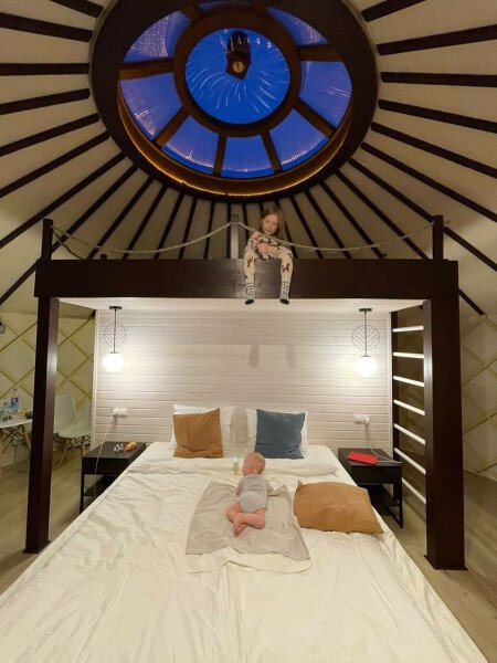 Юрта рассчитана на проживание семьи из двух взрослых и двух детей до двенадцати лет.