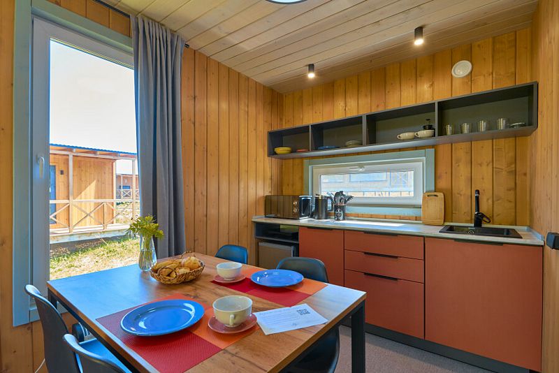 Домик расположен на первой линии и рассчитан на проживание семьи из двух взрослых и двух детей до двенадцати лет.