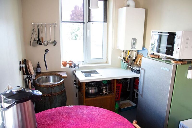 На территории есть баня, библиотека, площадка для барбекю, парковка и Wi-Fi.