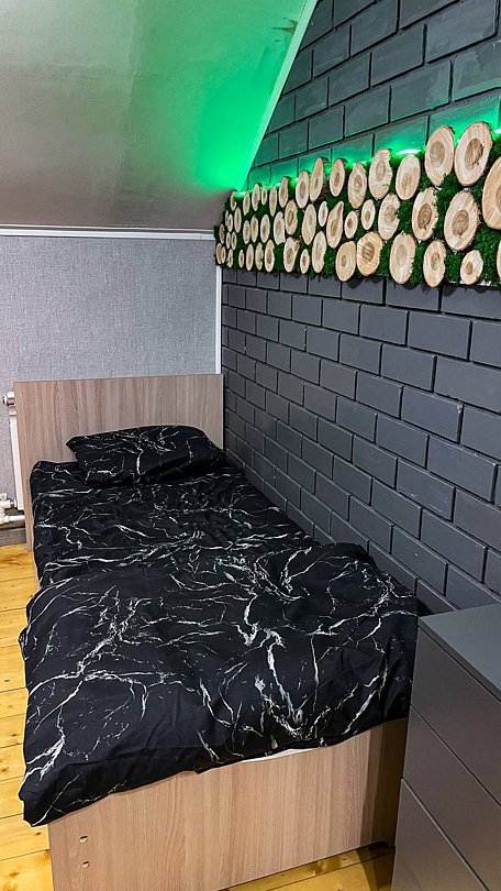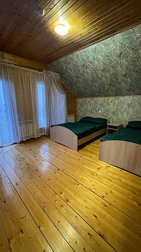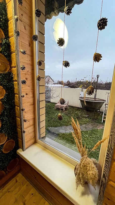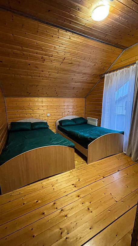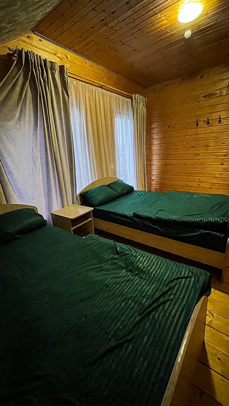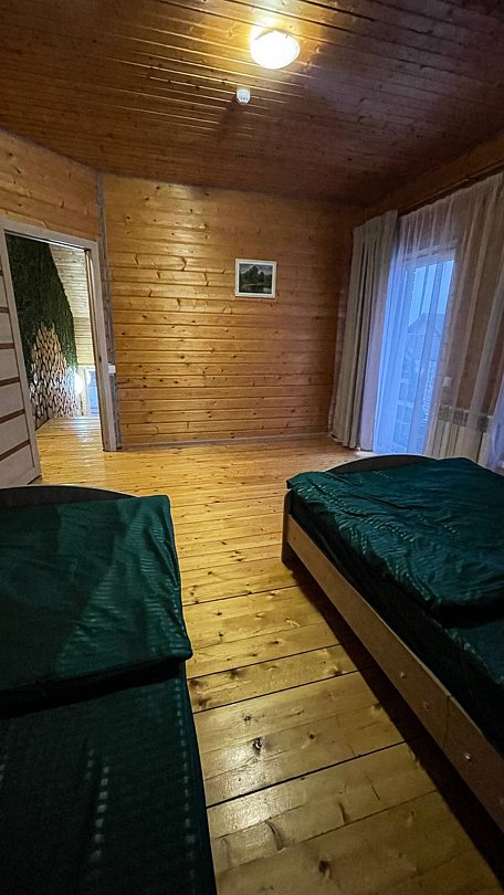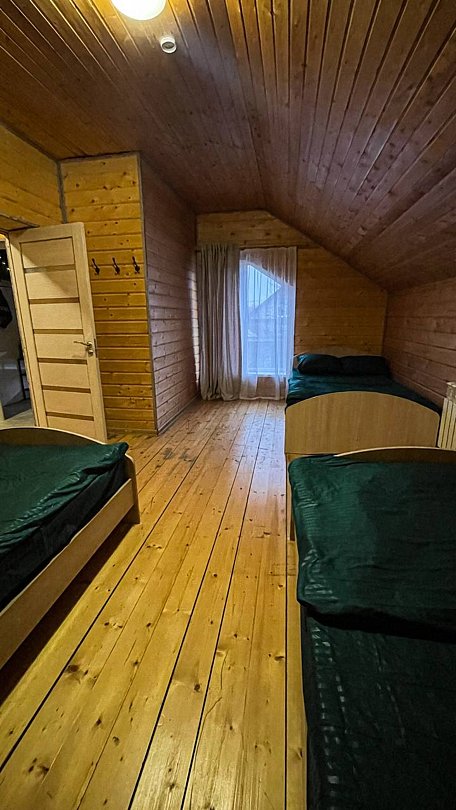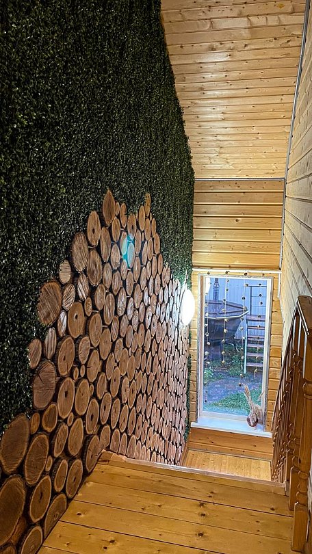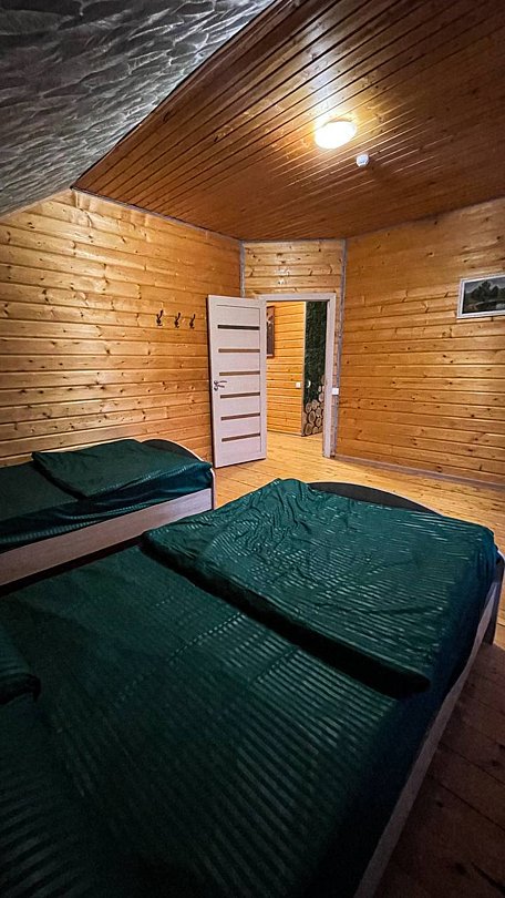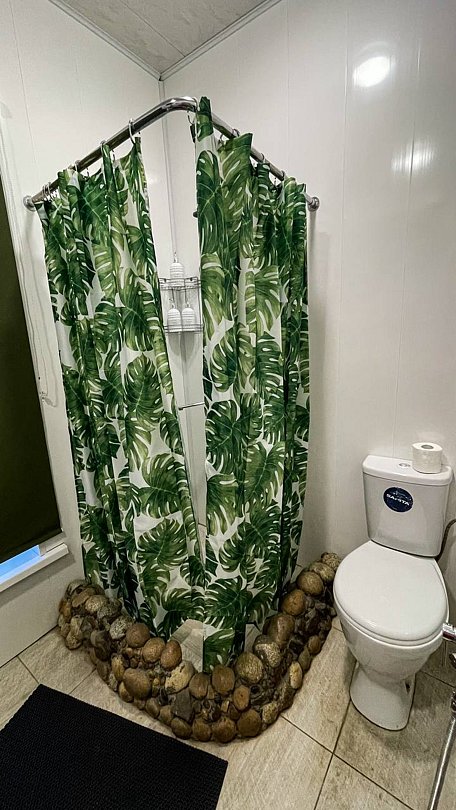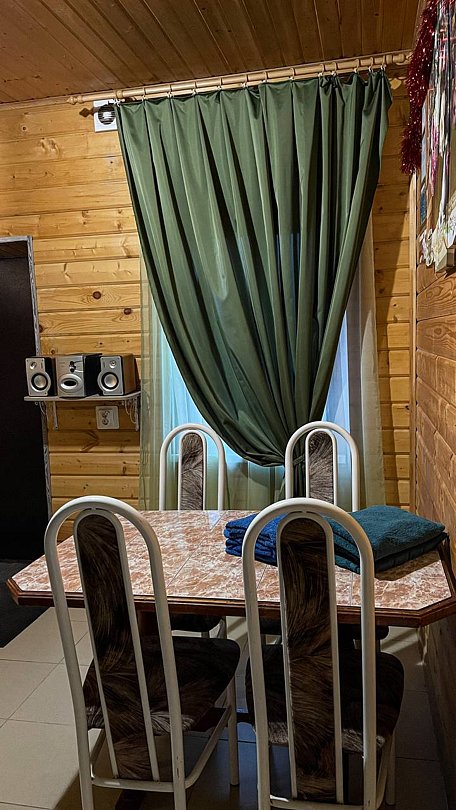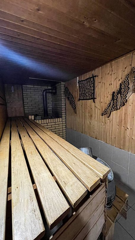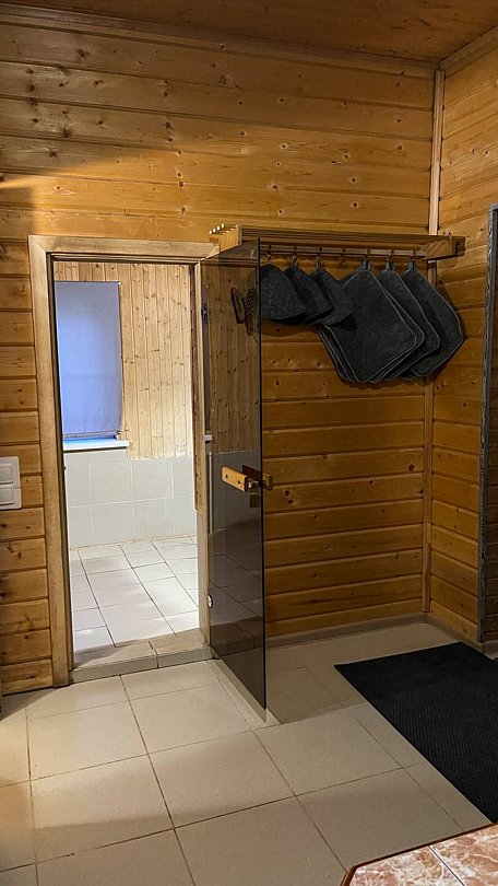 Сауна находится в домиках с комнатой отдыха и отдельным выходом на улицу.