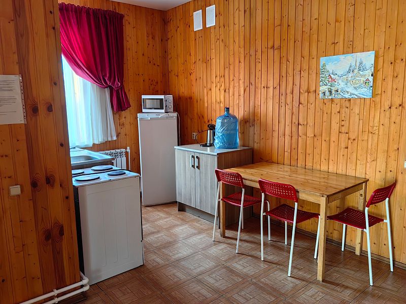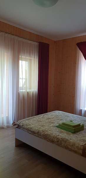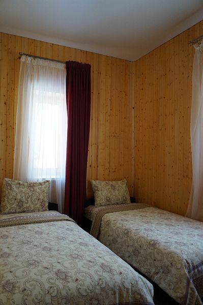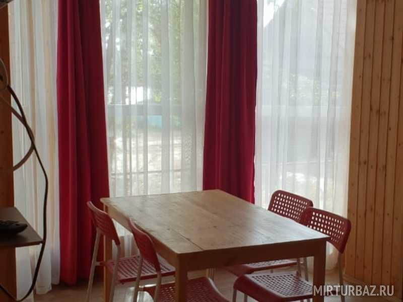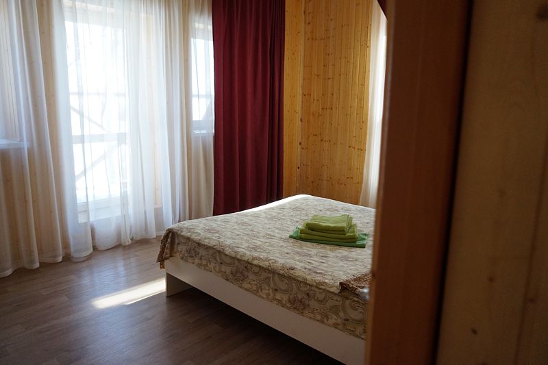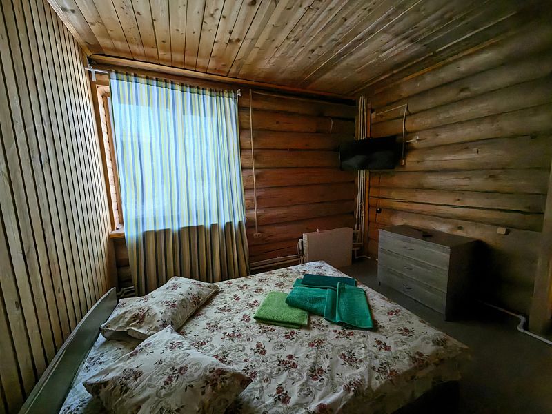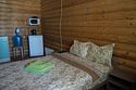 Площадь номера: 15 м2. В номере: двуспальная кровать, стол, стулья, прикроватные тумбочки, вешалка, зеркало, набор полотенец, набор постельного белья, телевизор, посуда, микроволновая печь, электрочайник, холодильник, вода,мангал. Удобства (душевая кабина, туалет, раковина) на этаже.