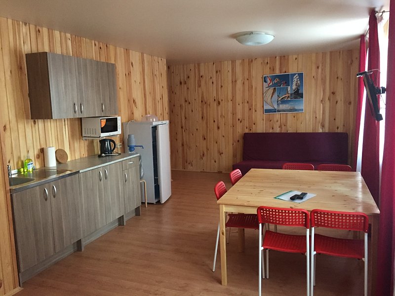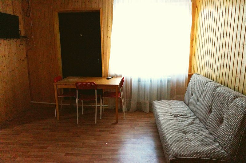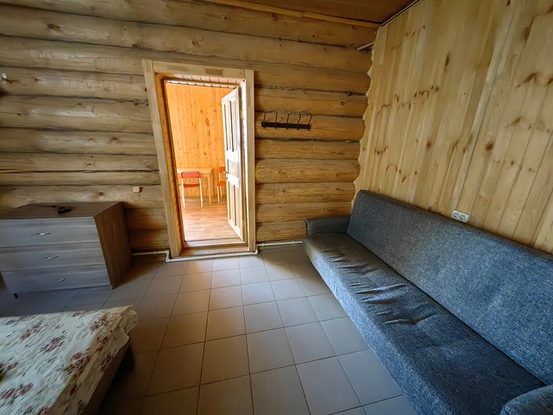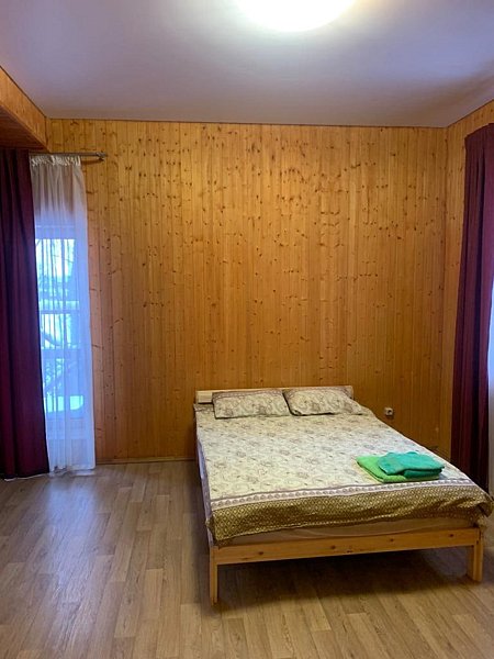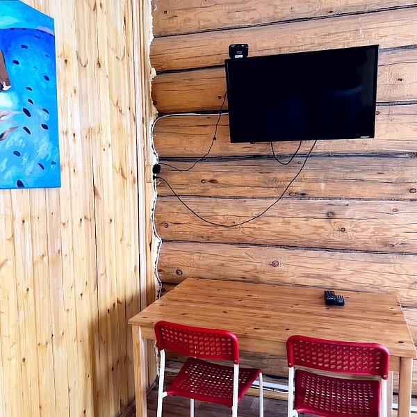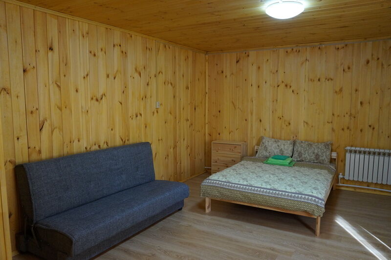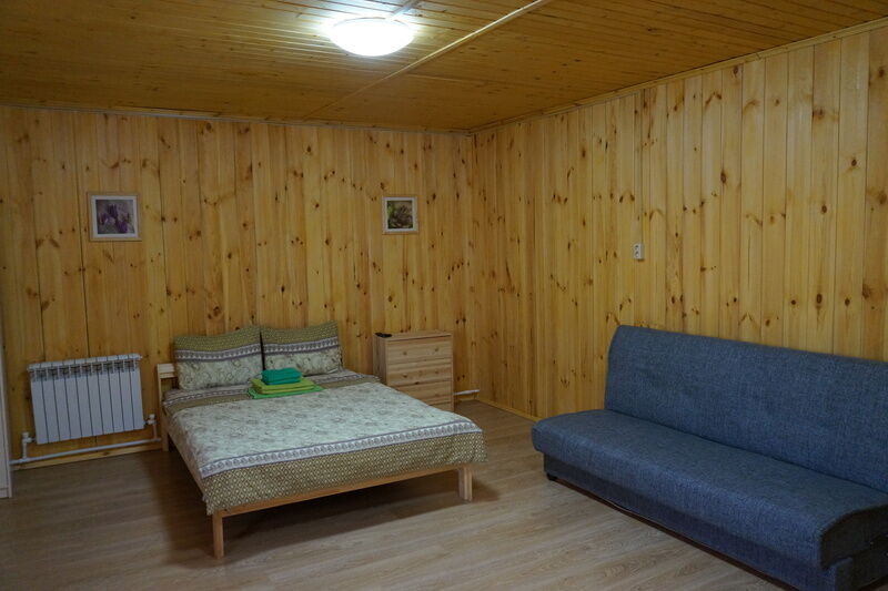 Двухместный номер, находится на втором этаже дома. В номере есть все удобства. Душ, туалет, кухонный уголок, где есть микроволновка, чайник, холодильник, питьевая вода, посуда. Так же, двуспальная кровать, шкаф, обеденный стол, телевизор и диван