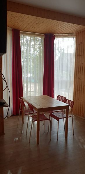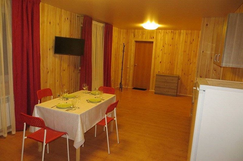 Площадь дома: 108 м2. В шале: две спальни, гостиная, кухня, телевизор, посуда, микроволновая печь, электрочайник, кухонный гарнитур, холодильник, вода, мангал. В ванной: туалет, раковина, душевая кабина, зеркало, набор полотенец.