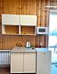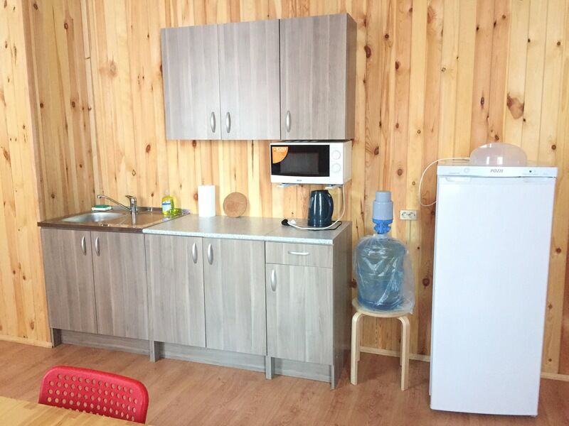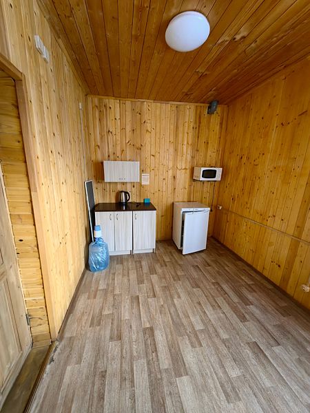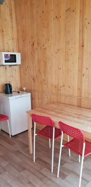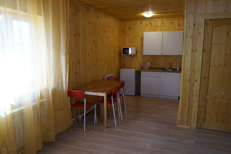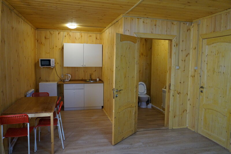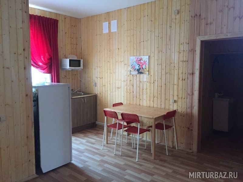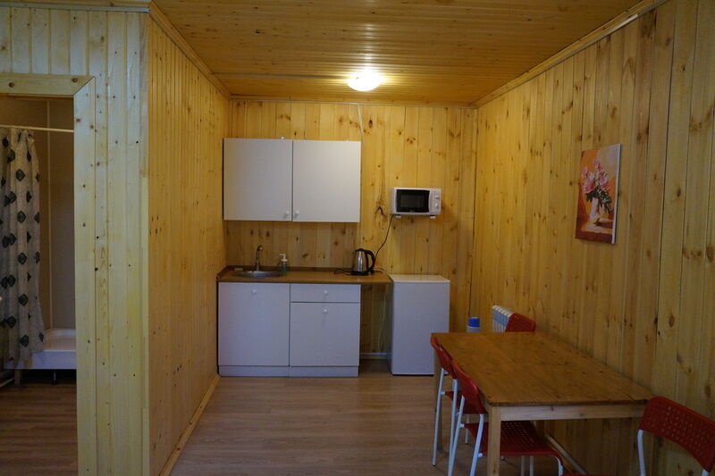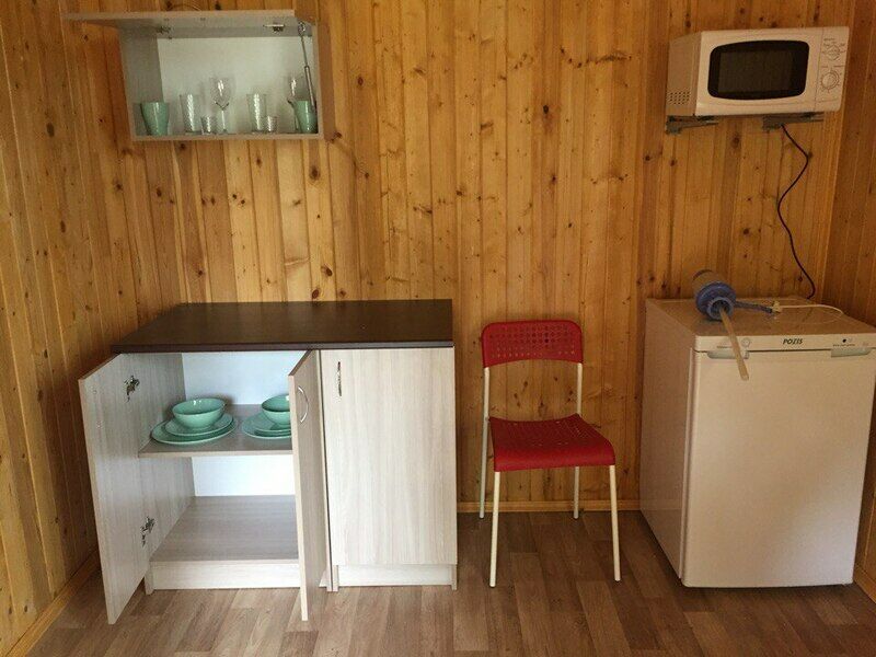 Двухместный номер стандарт, с отдельным входом. Внутри номера душ и туалет, спальня, обеденная зона. В кухонном уголке : микроволновка, чайник, холодильник. Питьевая вода. Из посуды: тарелки плоские и глубокие, столовые приборы, чашки, стаканы, фужеры, рюмки.