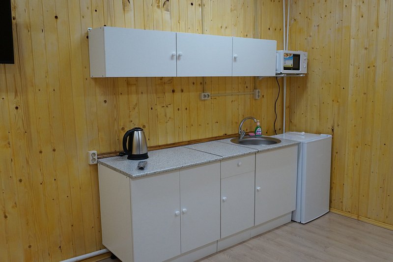 Читать полностьюНа базе отдыха «Займище» каждый вариант размещения оснащен уютным кухонным уголком, предоставляющим возможность гостям готовить любимые домашние блюда в удобной обстановке. В вашем распоряжении будут все необходимые кухонные принадлежности: микроволновая печь, чайник и холодильник, а также питьевая вода и набор столовой посуды, включая тарелки, приборы, чашки и стаканы.