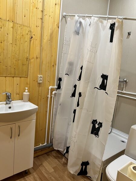 Площадь Дома: 68м2. В танхаусе: две спальни, кухня, сауна, вешалка, центральное отопление, телевизор, посуда, микроволновая печь, электрочайник, кухонный гарнитур, холодильник, вода, мангал. В ванной: туалет, раковина, душевая кабина, сауна, зеркало, набор полотенец.