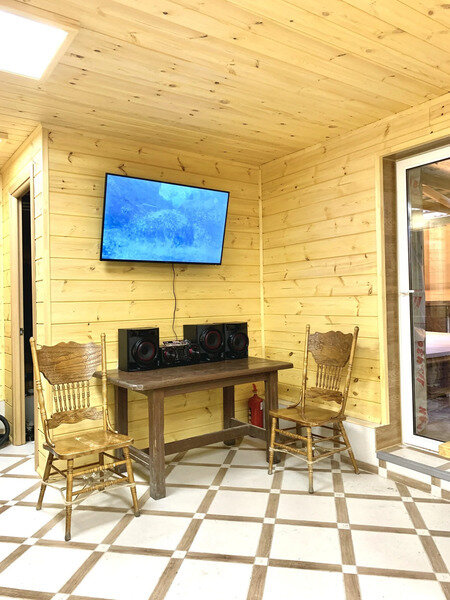 В стоимость входят простыни, фен, чайник, DVD.Русская баня «Внутренняя» до 12 человек