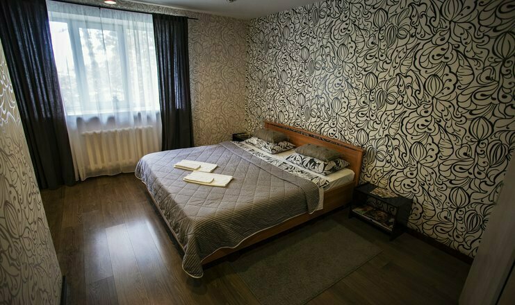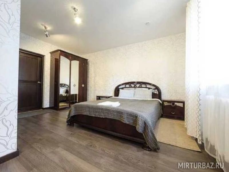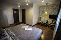Номер люкс с двуспальной кроватью: зал, спальня, спутниковое TV, мягкая мебель, двуспальная кровать, чайник.