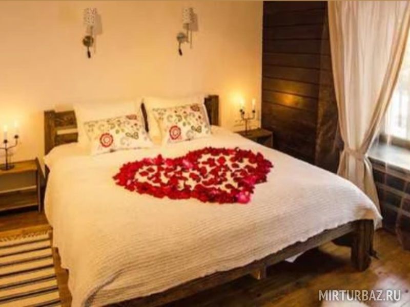 - номер люкс «Шале» для молодоженов, украшенный в романтическом стиле;