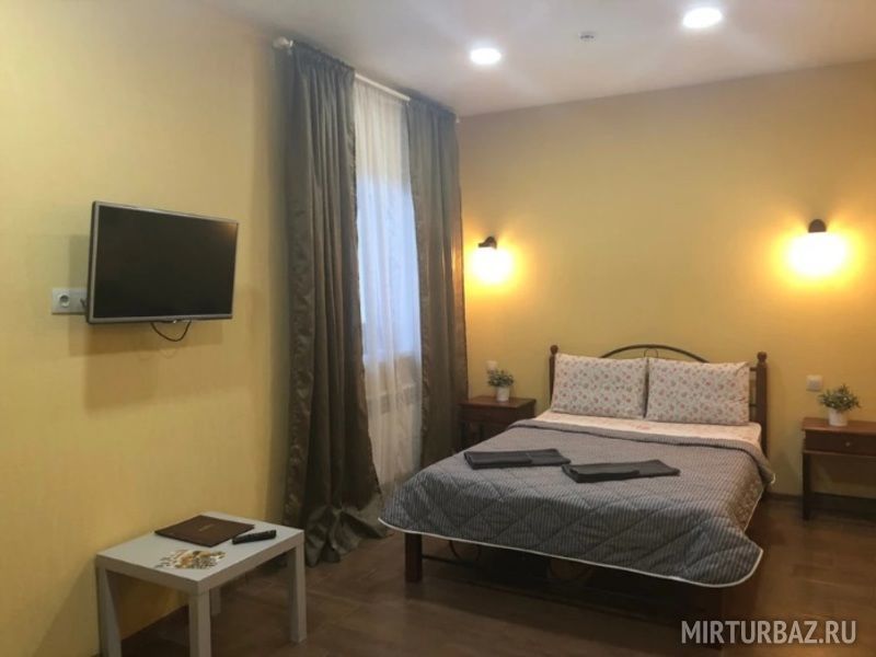 Полулюкс номер с двуспальной кроватью в гостинице: спутниковое TV, санузел с душем, чайник.