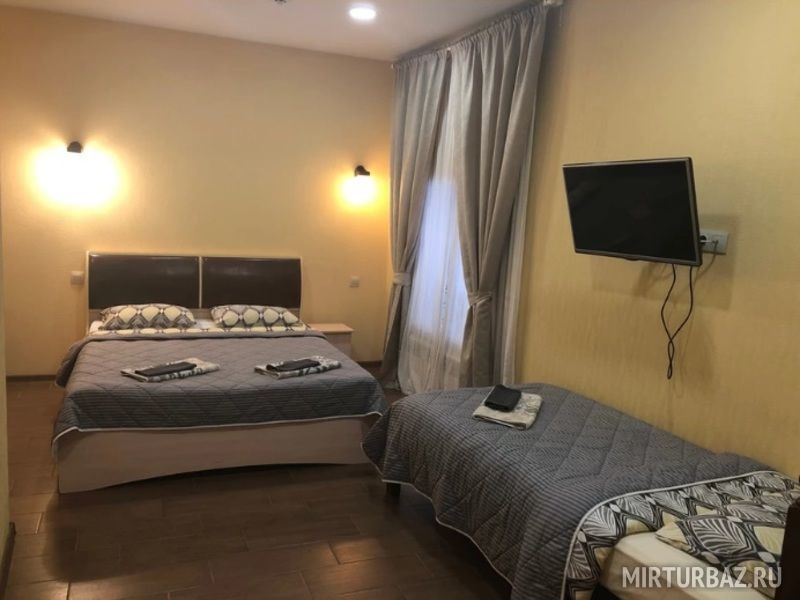 2 спальная кровать, холодильник, ТВ, чайник, с/у с душем рядом с номером