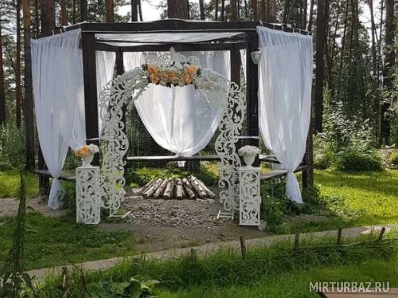 - выездная регистрация брака в крытых беседках, шатрах и залах, либо на специально оборудованных местах на природе;