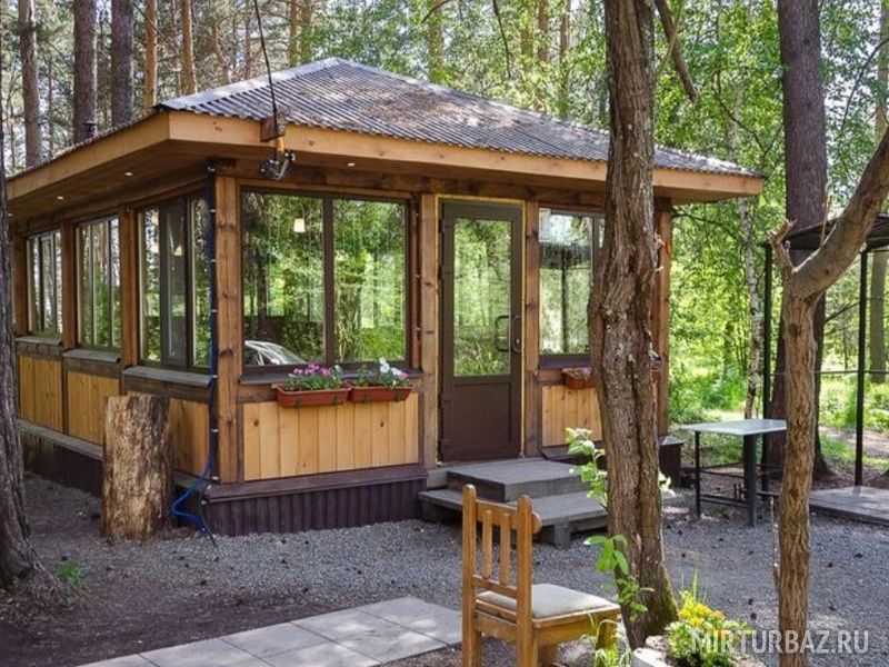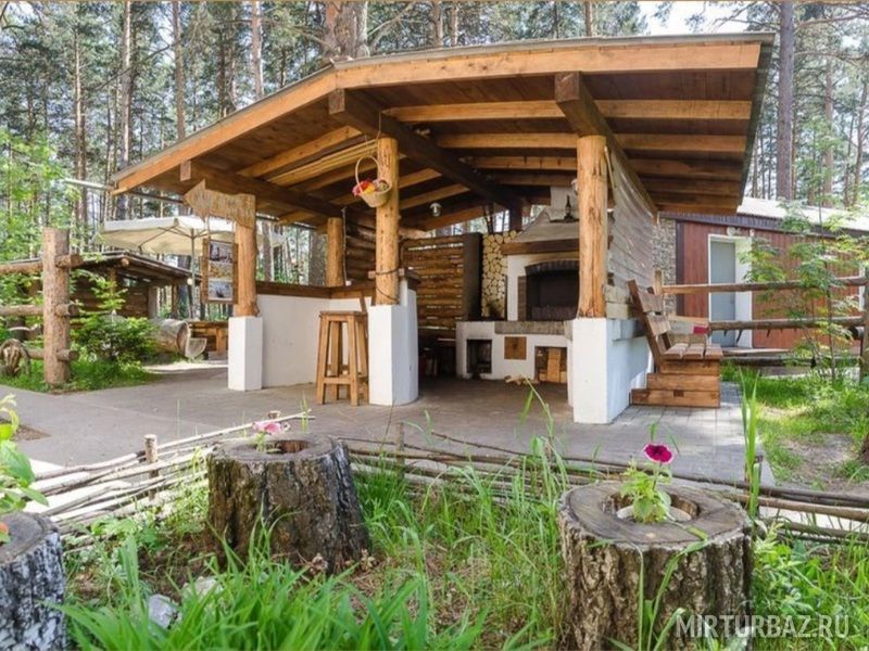 — кухня для самостоятельного приготовления пищи (холодильник, плита, посуда, СВЧ печь, кофеварка, мультиварка), гриль – — домик (казан, мангал);