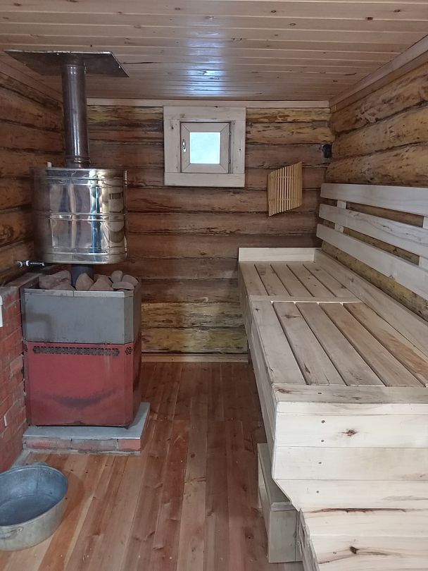 Накопившуюся усталость активного дня, конечно же снимет русская банька! Сложена из осиновых бревен, да с березовым веничком!.