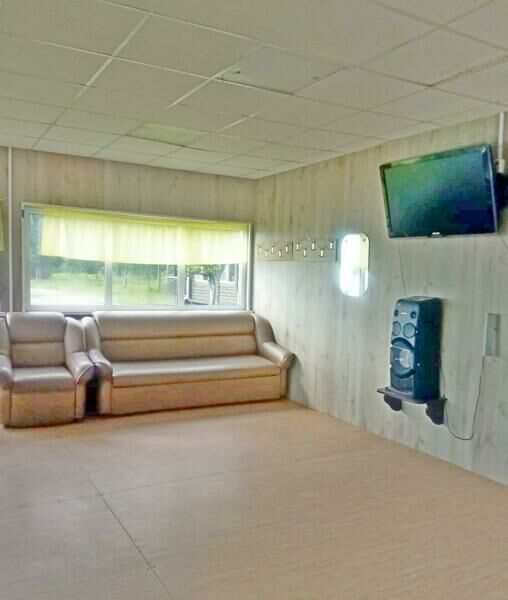 4 дивана, стол, телевизор, чайник, холодильник, большая беседка, зона для пикника с мангалом, WI-FI. Удобства на улице.