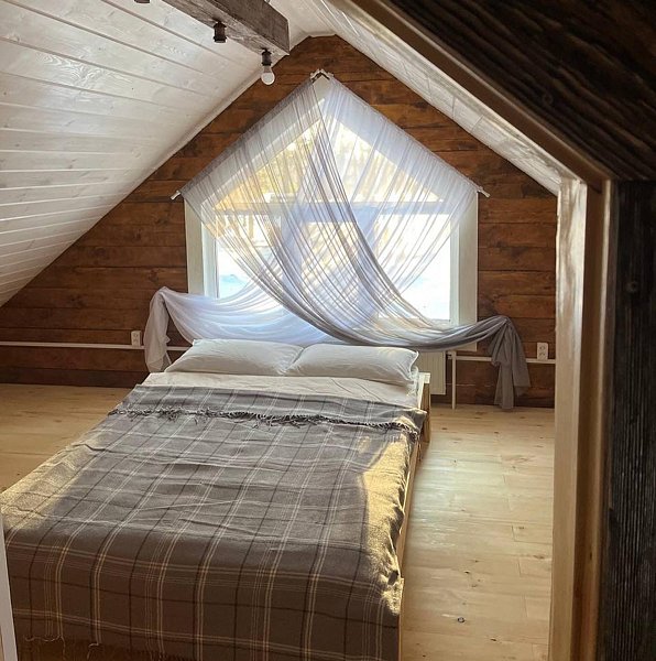 Для размещения предусмотрены деревянные дома, по вместимости рассчитанные как на большую компанию, так и на уединенный отдых. В домах установлена необходимая мебель. В большой гостевом доме – полноценная оборудованная кухня, в малом доме – мини-кухня. Удобства предусмотрены на территории, в большом доме оборудован туалет и раковина.