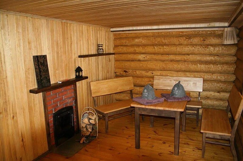 На территории работает баня на дровах из массива кедра на самом берегу реки. В бане имеется просторная комната отдыха, вмещающая до 6-8 человек. Во дворе установлена беседка с мангалом и большим столом, где можно перекусить на свежем воздухе, пожарить мясо на углях, приготовить плов.