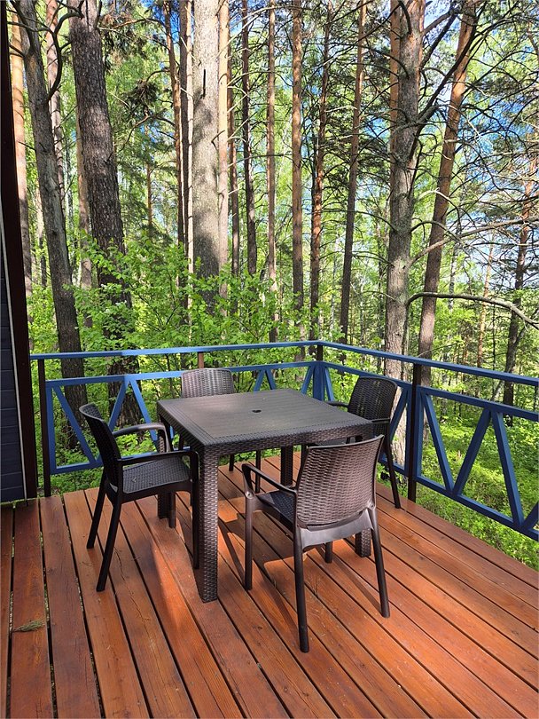 Уютный, отдельно стоящий домик на склоне соснового леса. Большое панорамное окно и собственная терраса с видом на лес - приготовьтесь делать незабываемые фото на память! Рядом с домиком костровое место, идеально для романтического и семейного отдыха или теплых дружеских посиделок вокруг костра.Услуги и удобства