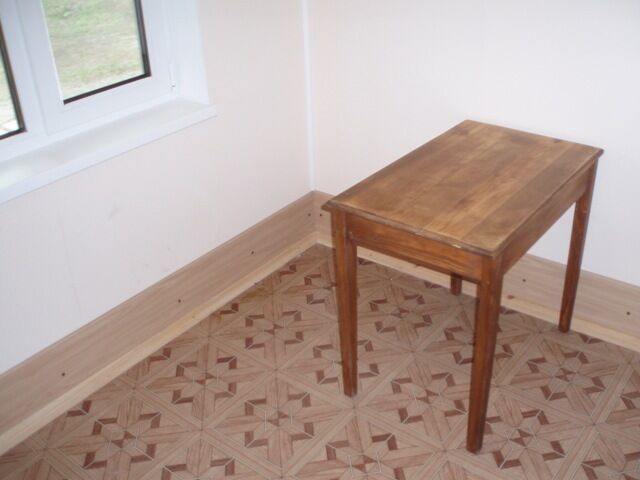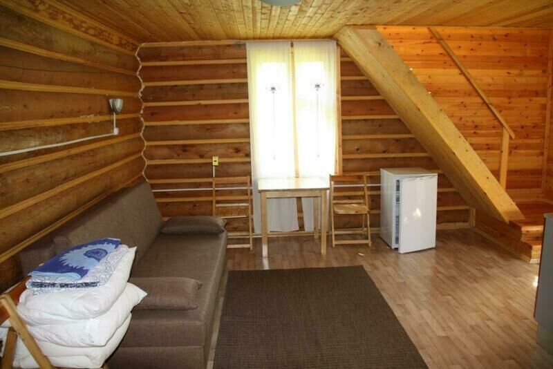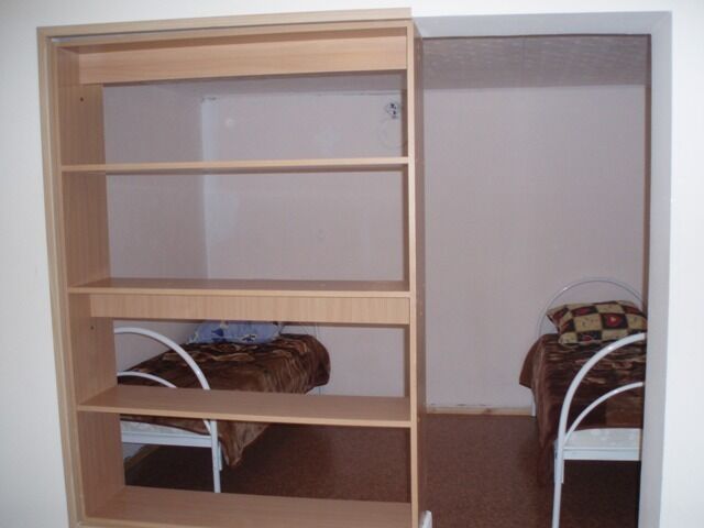 Две кровати, стол, стулья, электричество, туалет и душевые на улице.
