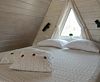 Глэмпинг разместился на благоустроенной закрытой территории, где расположен треугольный домик афрейм с террасой, баня-бочка и банный чан. Внутри домика есть все необходимое для автономного проживания – оборудованная посудой и бытовой техникой кухня, удобные спальные места – кровать на втором ярусе и раскладной диван внизу, персональный санузел с душем и гигиеническими принадлежностями. Для большего комфорта гостей предусмотрены теплые полы, есть кондиционер, bluetooth колонка, доступ к wi-fi.