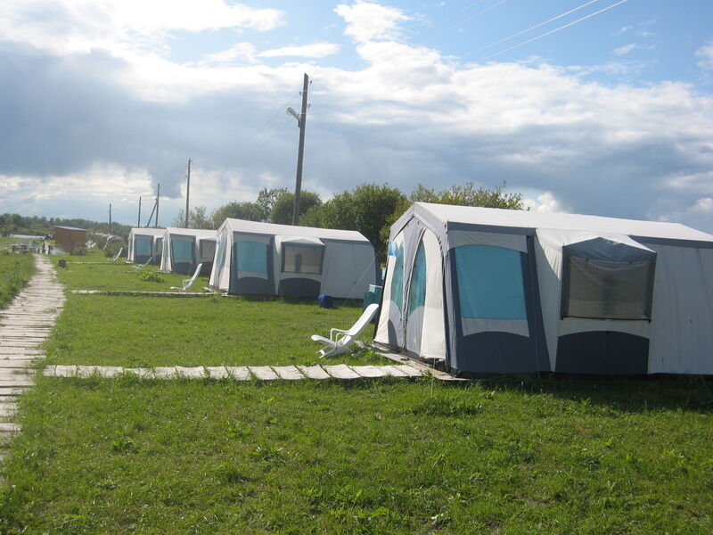 Палаточный городок: 2-х, 4-х и 6-ти местные палатки, установленные на деревянных настилах.