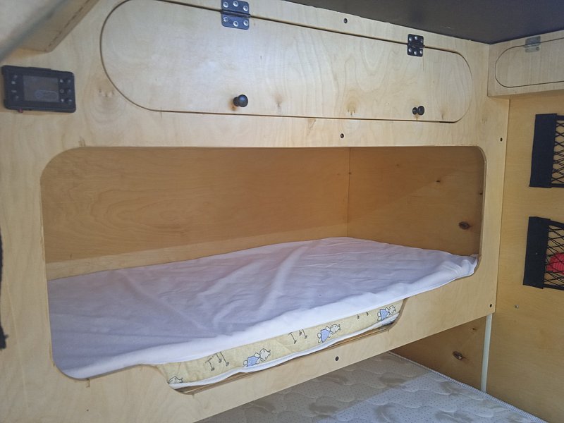 - в нём имеются два спальных места 200х147 и детская кроватка 147х70;