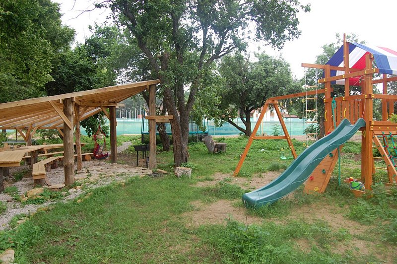 На территории есть уютные номера для проживания. Для приготовления пищи можно воспользоваться кухней, оборудованной всем необходимым. Среди развлечений: сауна, детская площадка, полоса препятствия, скалодром, игровая комната, спортивный зал, тир и многое другое!
