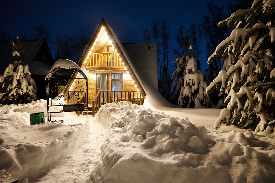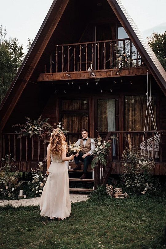 Двухэтажный дом-афрейм подойдет для семейного отдыха.