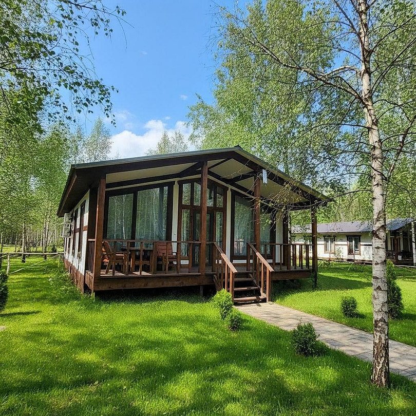 НедостаткиСервис хромает очень сильно. В домике было не убрано, ждали час пока помоют полы. На следующий день тоже никто не убрался, хотя мы звонили администратору и просили убраться. Завтраки ужасные, (с 9 до 11 утра) мы пришли в 10 и уже почти ничего не было, кофе самый дешевый растворимый, сосиски, колбаса и сыр тоже самые дешевые, ужасные на вкус. В кафе очень тихо и темно как в подвале, на ресепшене никого нет никогда, приходится звонить администратору на мобильный по каждому вопросу. Возле самих домиков идет стройка, по территории прогуливаются строители, слышны звуки пилы, а не пение птиц
