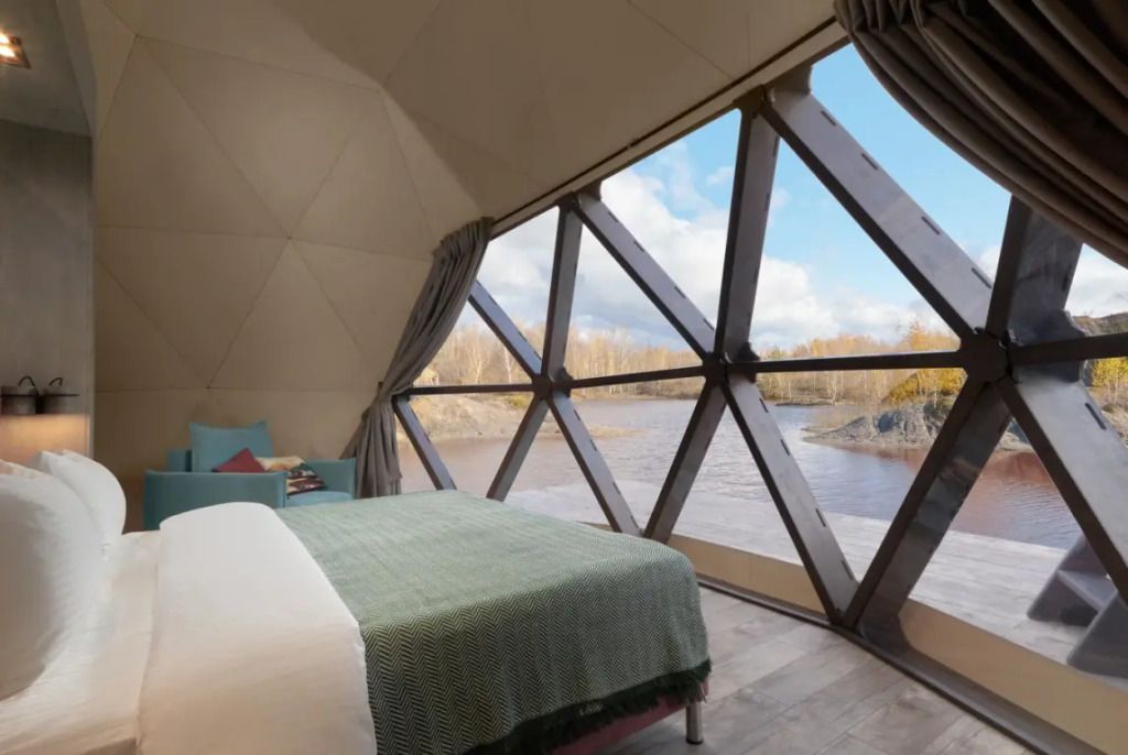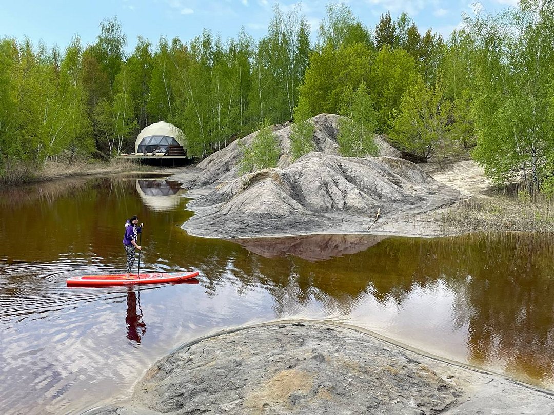 Глэмпинг «Аномалия» расположен в зоне, где все выходит за рамки обыденного. Уникальный комплекс в Туле окружен потрясающими озерами: винным, бирюзовым и зеленым, который осенью приобретает ярко-желтый оттенок. Голубые водоемы в Кимовске также являются одной из главных туристических жемчужин Тульской области. Пейзажи региона вызывают ассоциации с фантастическими мирами и одновременно напоминают о красотах природы Алтая или Карелии.