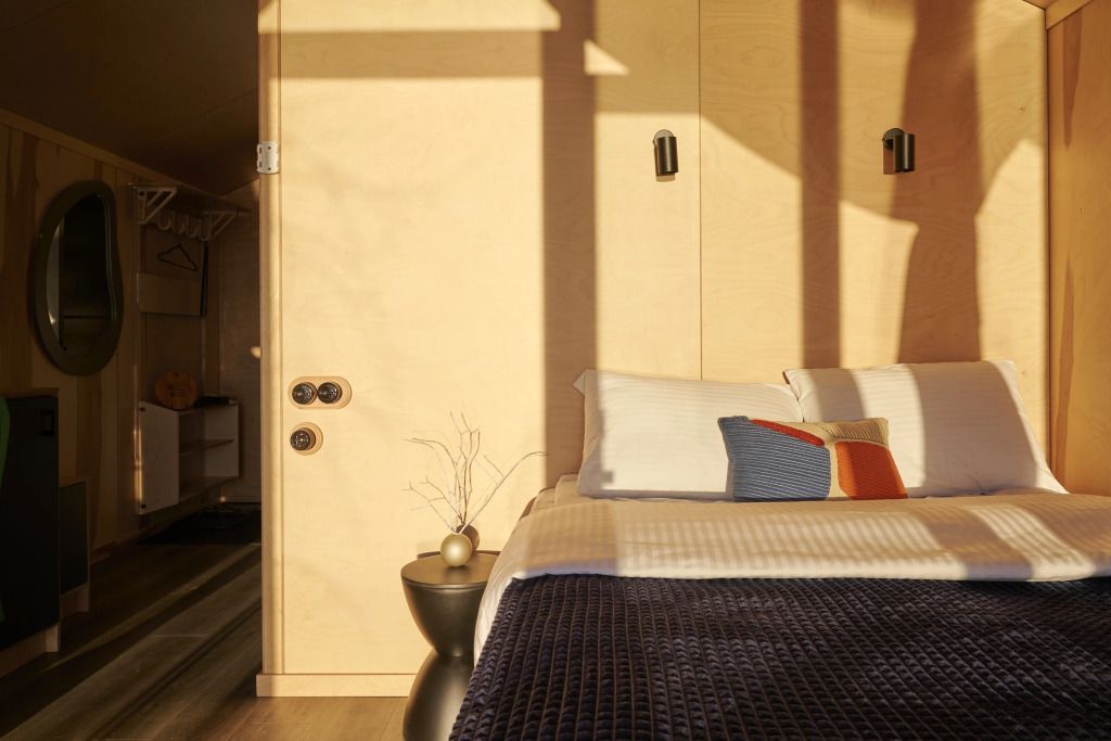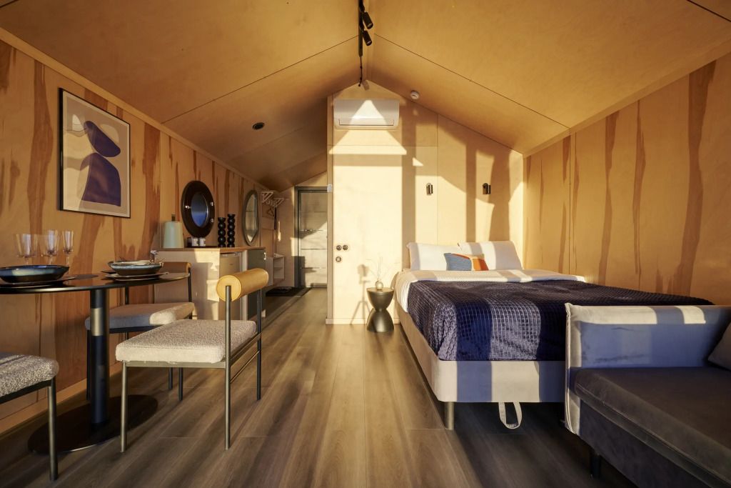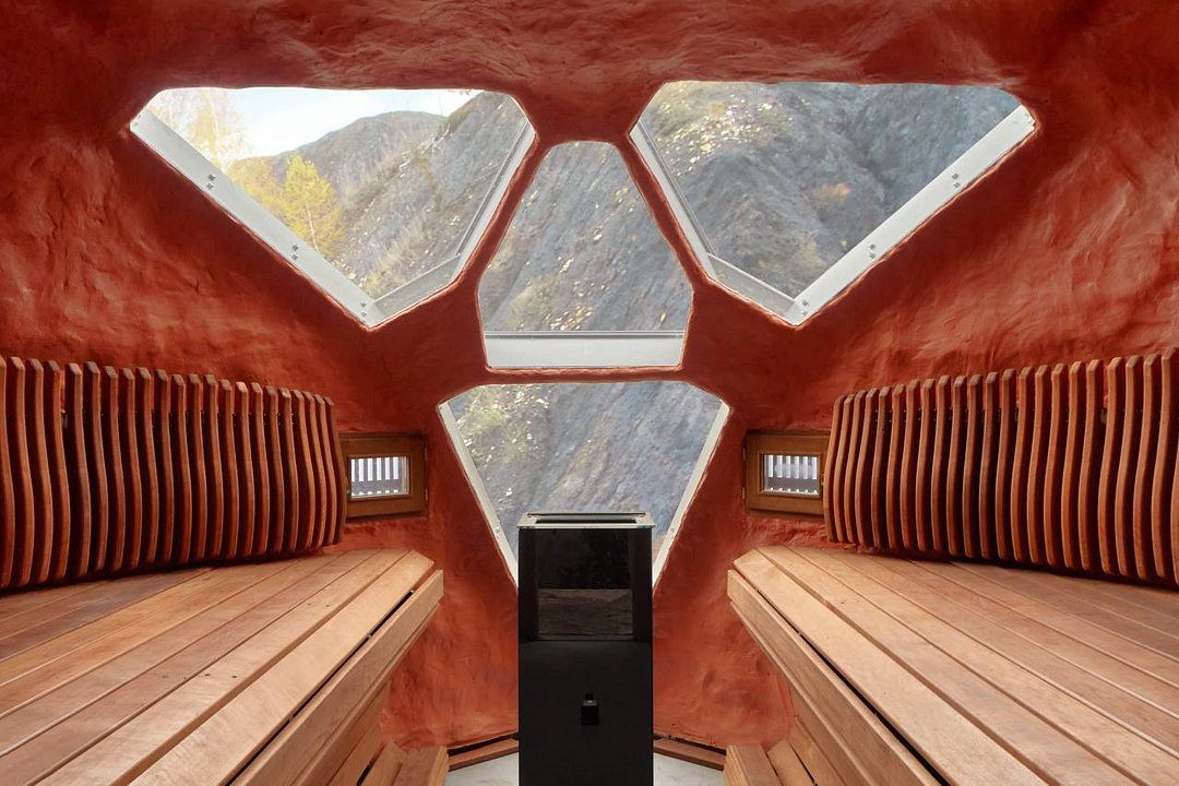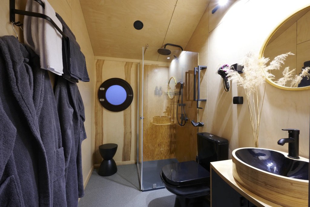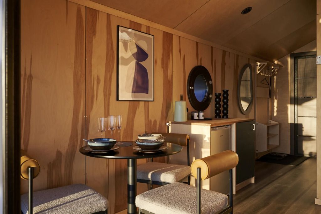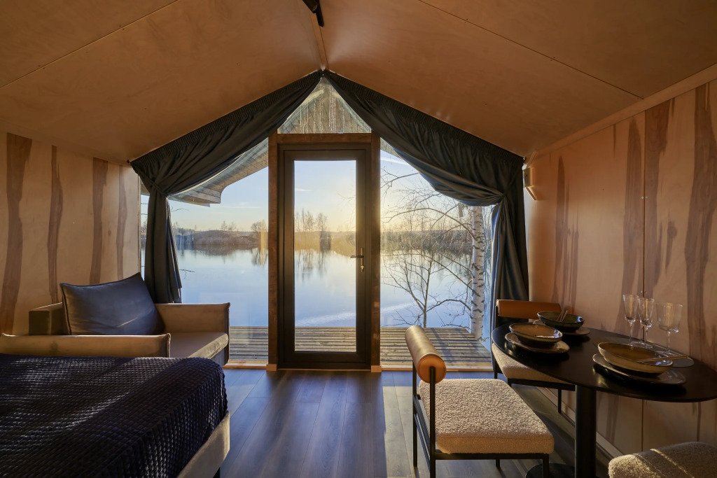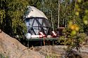 На территории глэмпинга функционирует ресторан. После путешествия по холмам вокруг ярких озер, гости имеют возможность побаловать себя расслабляющей процедурой в космической СПА-бане или окунуться в бочку Фурако на личной террасе.