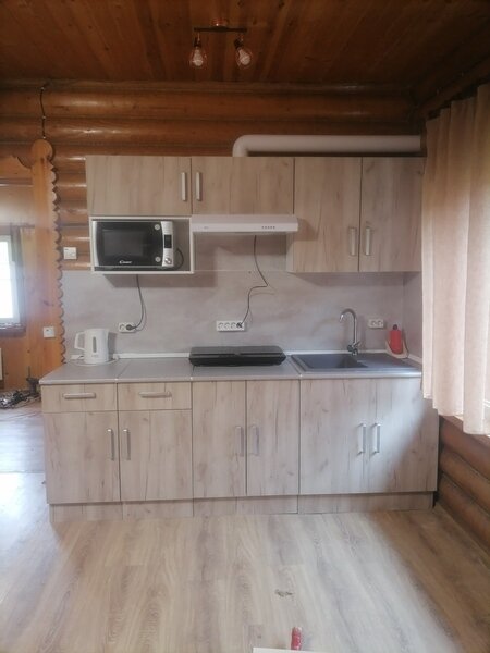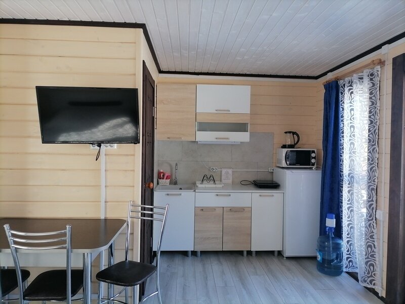 Санузел с душем, ТВ, 2 мини-холодильника, мини-кухня, беседка, доп. места - три дивана, раскладное кресло