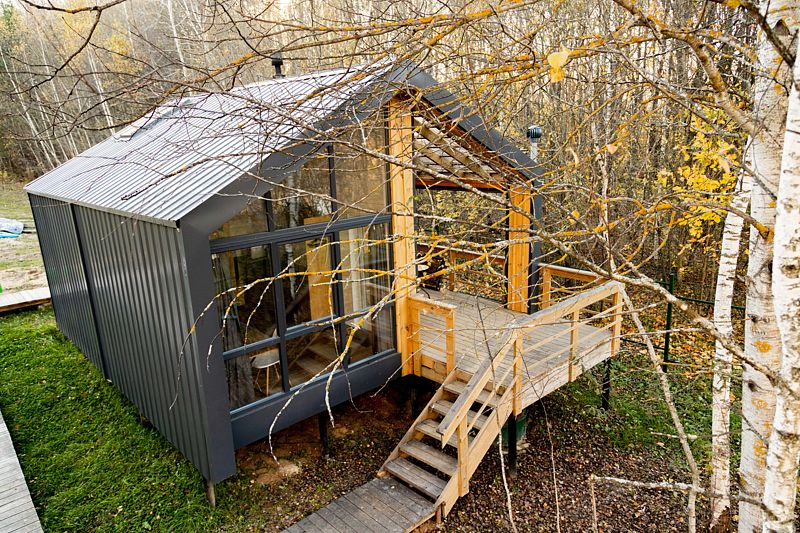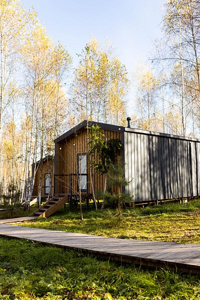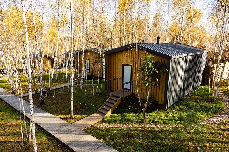 Домик в самом сердце березового леса с панорамными окнами и видом на озеро, находится на отдельной приватной территории.