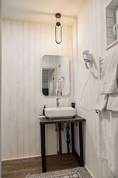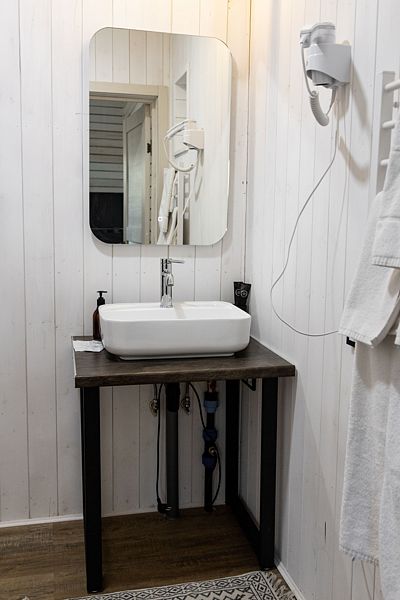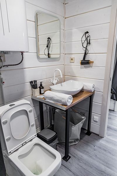 - Отдельно стоящая ванная и душ с теплым полом добавят нотку роскоши вашему отдыху.