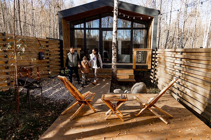 Подходит для незабываемого свидания со второй половинкой, а также для уютного отдыха в кругу семьи. Чтобы не отвлекаться на бытовые заботы — в домиках заботливо все предусмотрено.