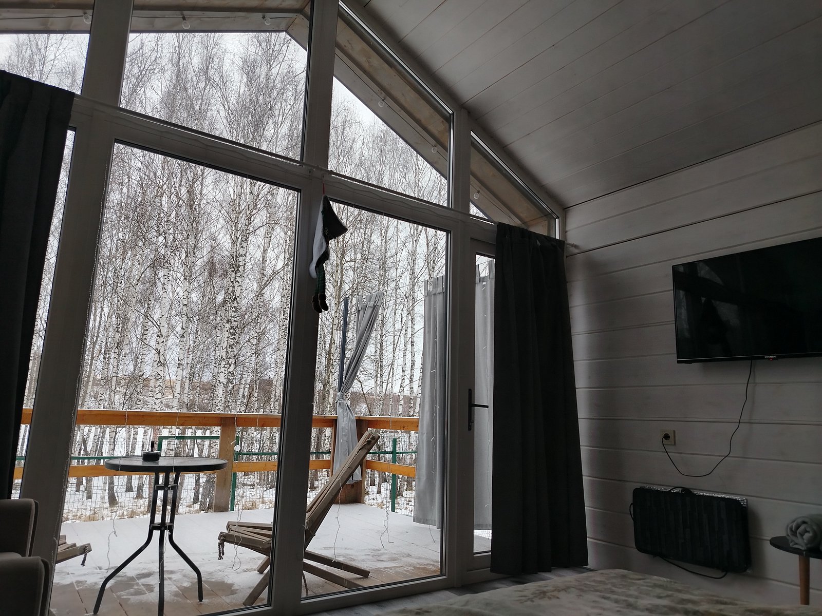 Семейный отдыхДостоинстваУединение, вид из номера на березовую рощу и водоём. В номере есть всё необходимое чай, кофе, сливки.