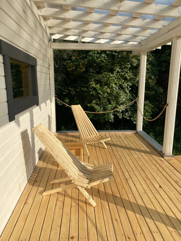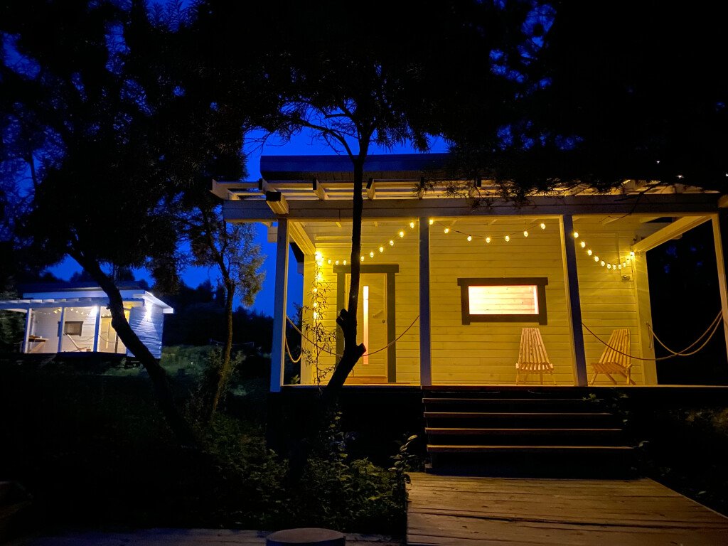Три дома выполнены в формате Tiny house — компактные, с продуманной планировкой, идеально подходят для пары взрослых гостей.