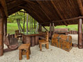 Стеклянная крыша укрывает от палящих солнечных лучей. Ажурные ограждения позволяют гостям чувствовать себя защищенными в непогоду и не мешают наслаждаться великолепным ландшафтом и природой отеля ГРУМАНТ. Кованые беседки придают изысканность и легкость веранде.
