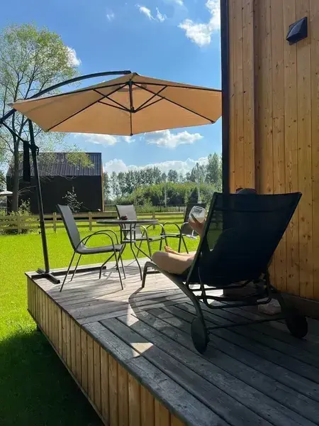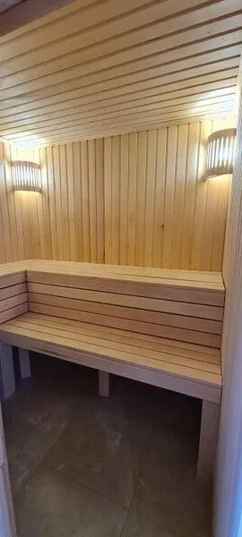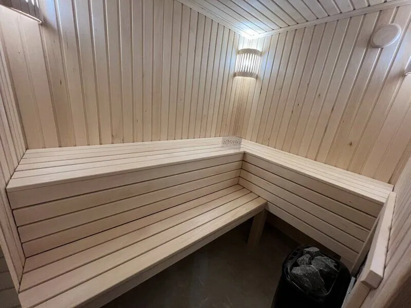 Особую изюминку вашего пребывания придаст персональная финская сауна, оснащенная электрической печью Harvia. Наслаждайтесь живительным паром в уединении, в любое удобное для вас время. Дополняет атмосферу умиротворения и комфорта собственная терраса каждого домика. Здесь вас ждут шезлонги под лёгкими зонтами, а также зона для приготовления блюд на мангале — идеальное место для неспешных трапез на природе.