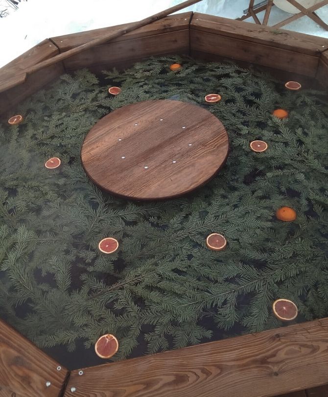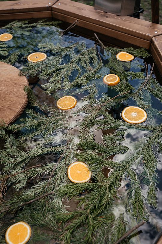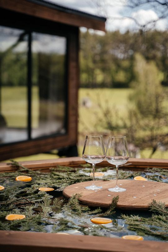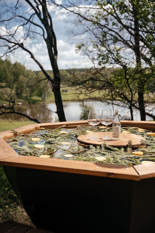 Не забывайте о банном чане на дровах, из которого открывается потрясающий вид на окружающую природу. Вы сможете добавить любимые ингредиенты, такие как еловые ветки или лепестки роз, что сделает ваше времяпрепровождение особенным.