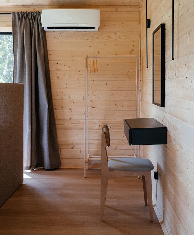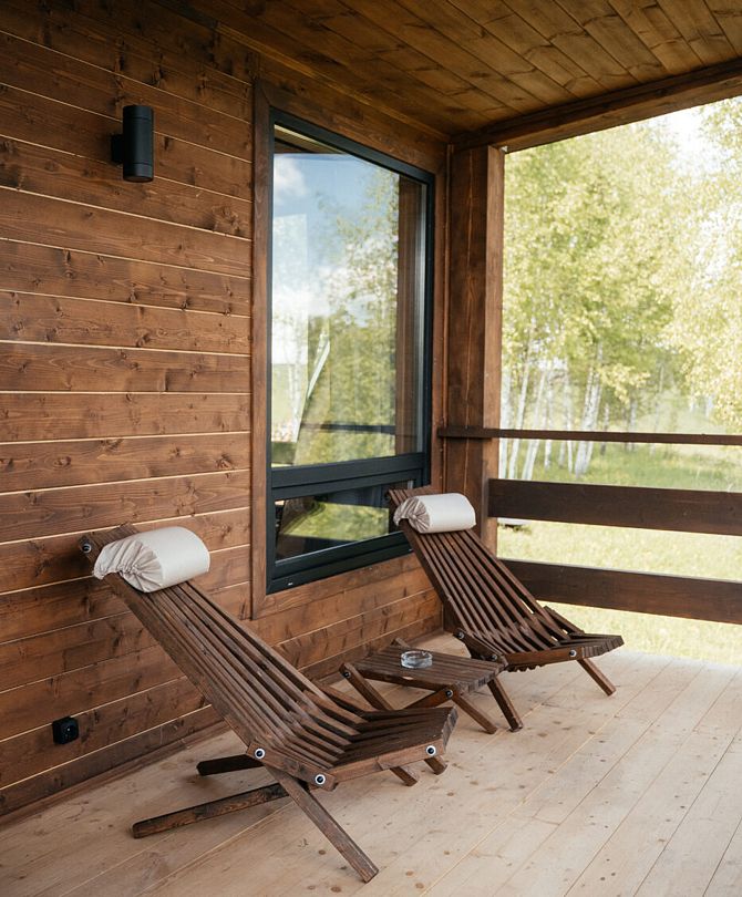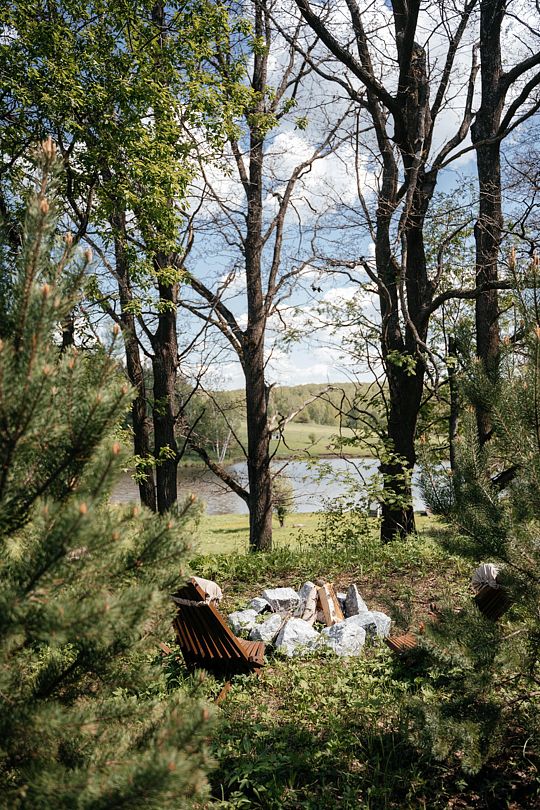 Рядом с каждым жилым домом расположен уникальный банный чан, который нагревается дровами и открывает панорамный вид на озеро и лес. За дополнительную плату гости могут добавить в чан любимые ингредиенты: еловые ветки, цитрусовые, луговые травы.