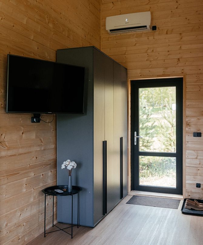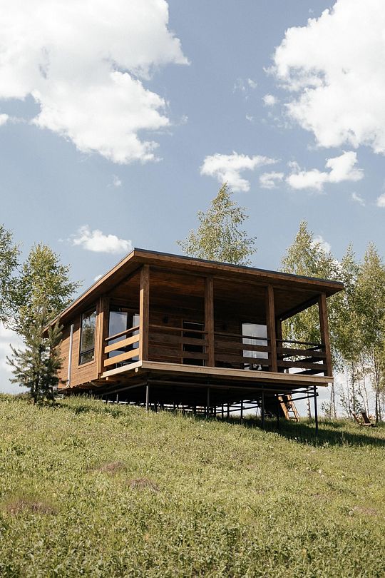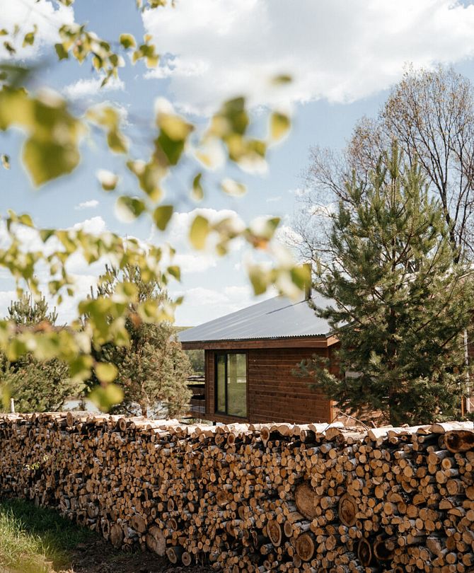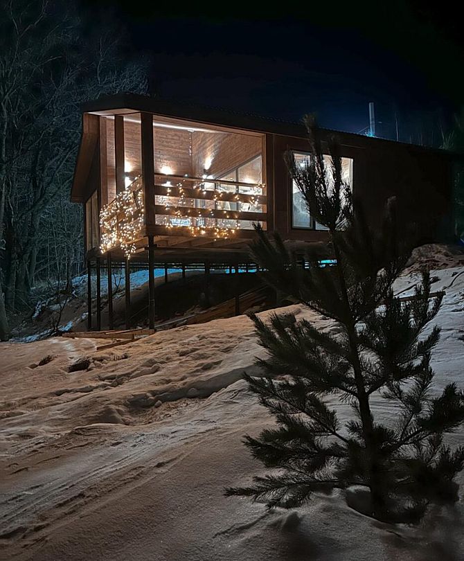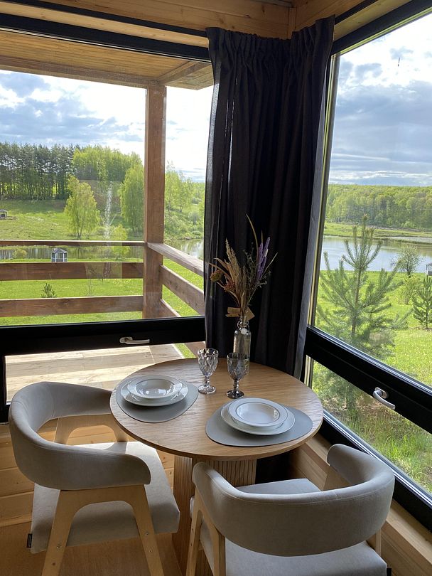 Дом «Береза» — современный гостевой дом со всеми необходимыми удобствами, расположенный на берегу озера на окраине леса. Дом рассчитан на 2 человек (возможно +1 ребенок). Имеет панорамные виды на озеро и лес. Есть парковка.