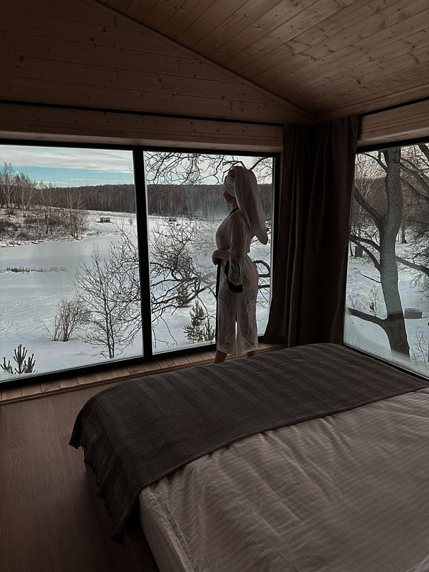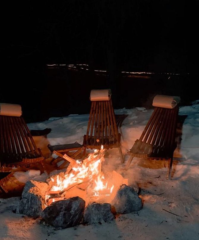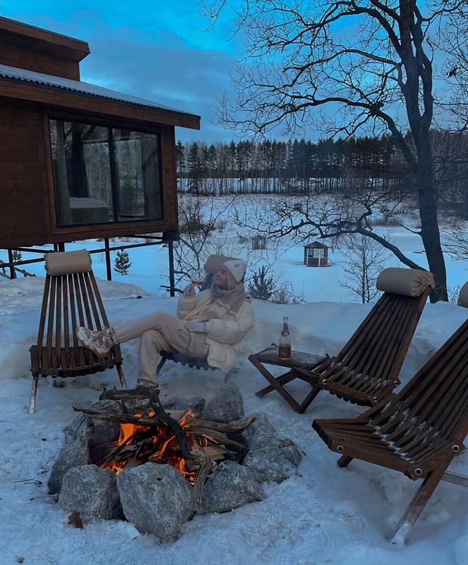 Читать полностьюРядом с каждым жилым домом расположен уникальный банный чан, который нагревается дровами и открывает панорамный вид на озеро и лес. За дополнительную плату гости могут добавить в чан любимые ингредиенты: еловые ветки, цитрусовые, луговые травы.
