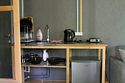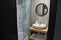 Санузел с душем, одна двуспальная кровать и 2 односпальные кровати, мини-кухня