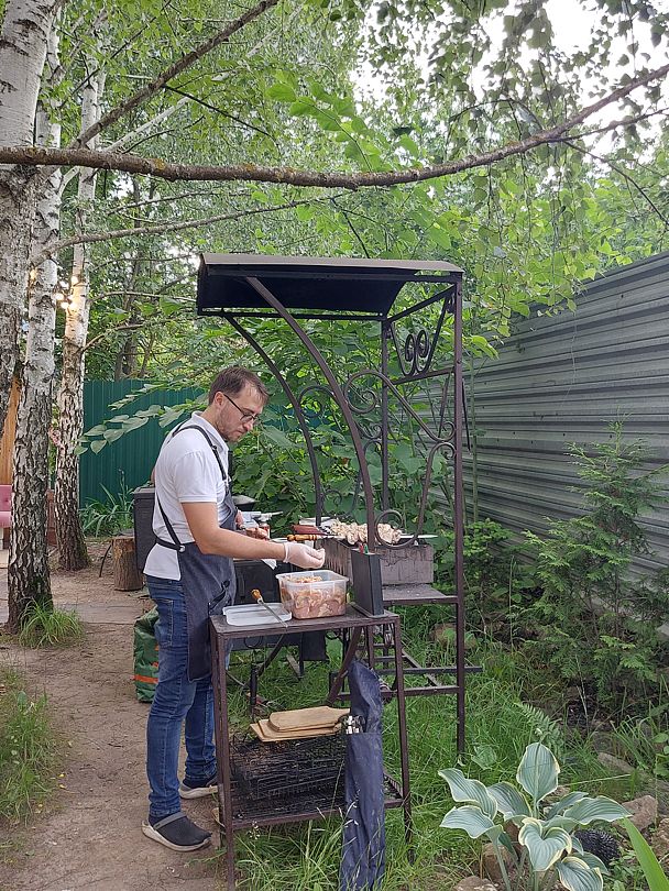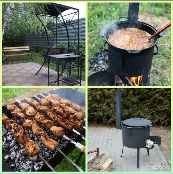- мангал, шампуры, решетки для гриля- печь под казан;
