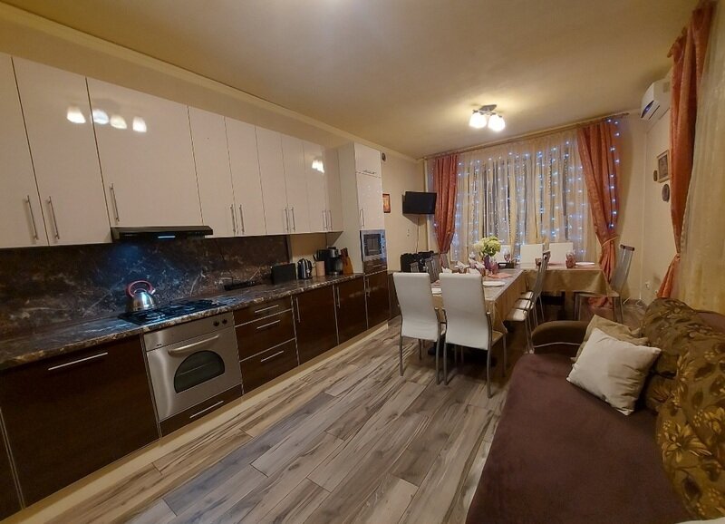 - полностью оборудованная кухня со всей необходимой бытовой техникой и стильной посудой;