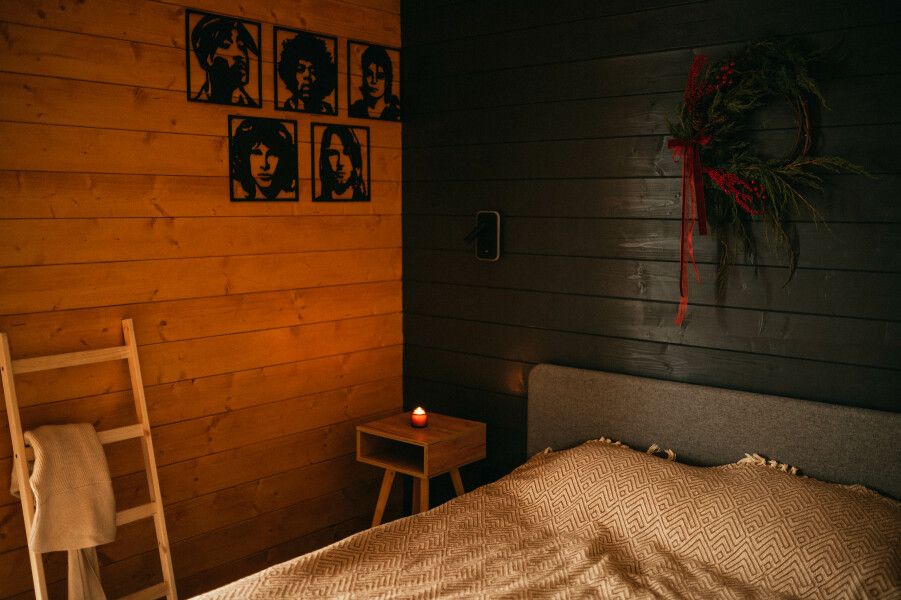 Площадь — 112 кв. м. В доме две спальни, кухня-гостиная с раскладным диваном, санузел, душевая и парная. Вместимость — до шести человек.