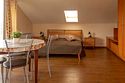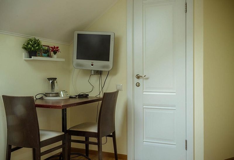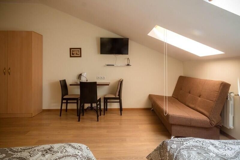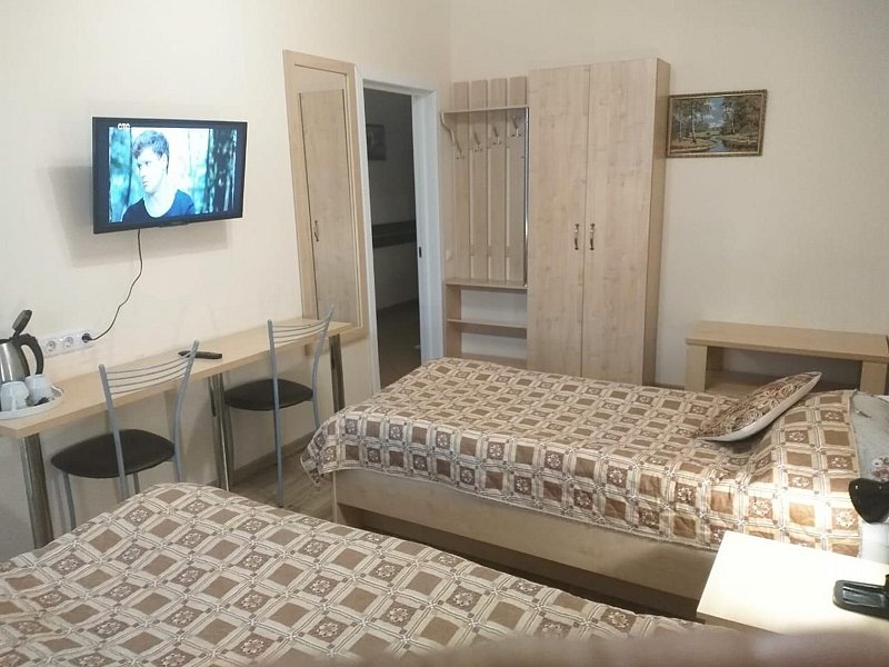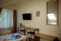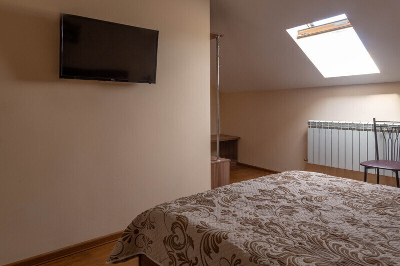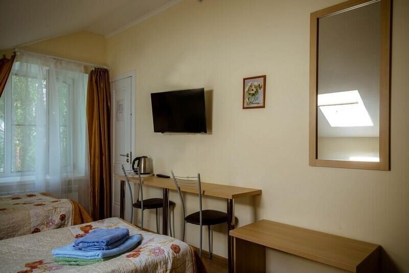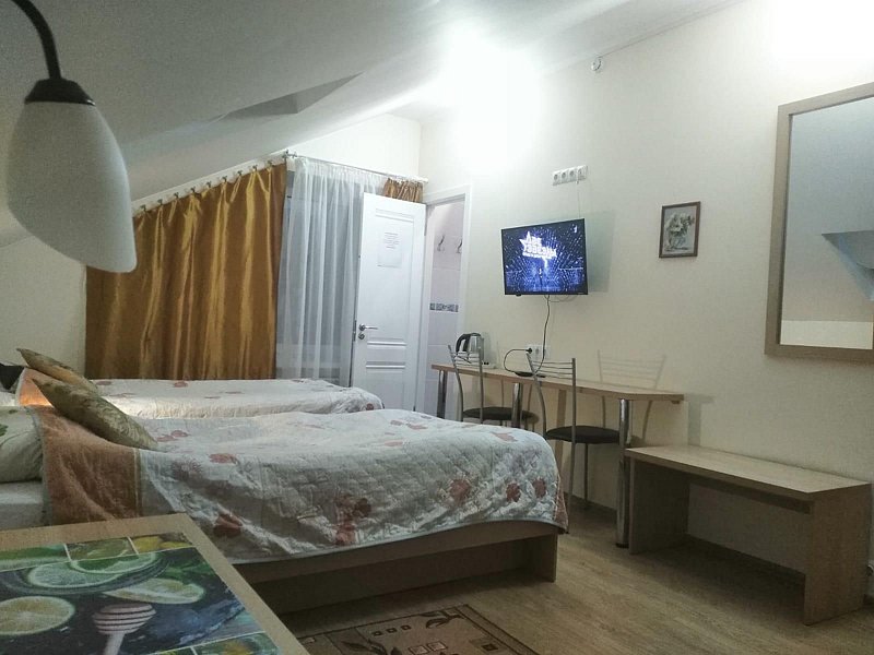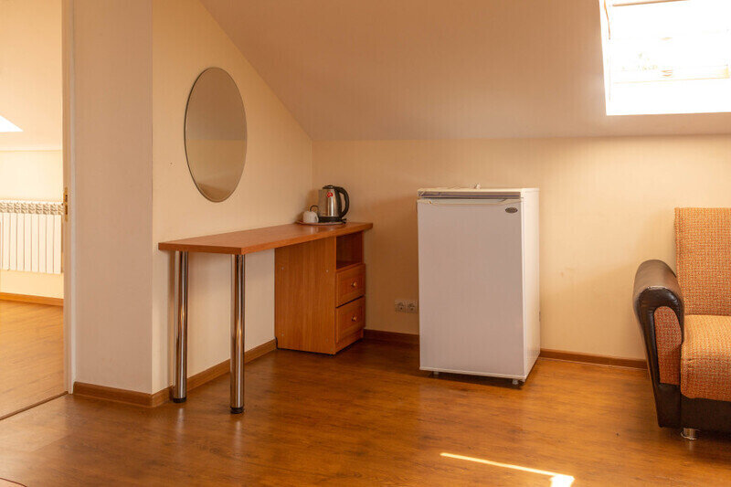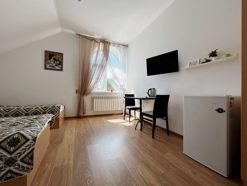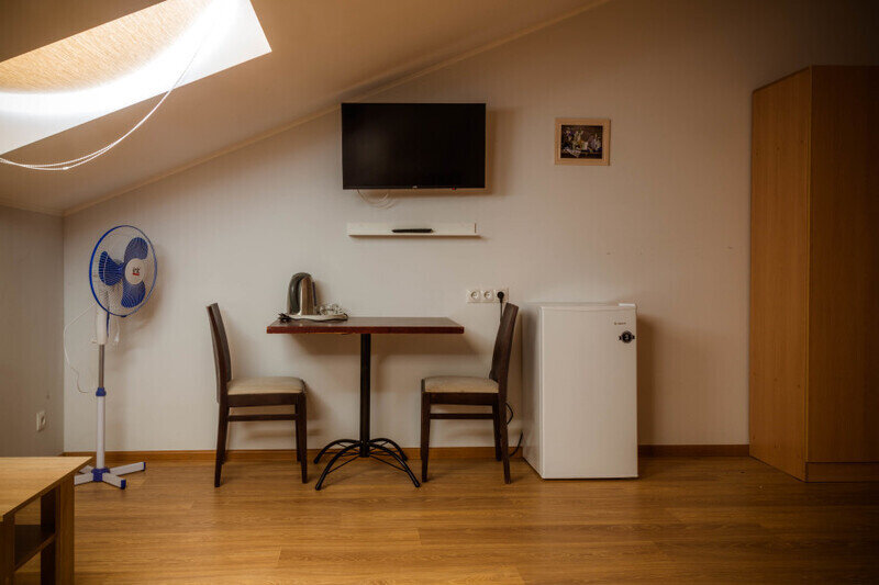 Двухместный номер с 2 кроватями 200x90 и холодильником, в этой комнате возможно размещение одного дополнительного места — раскладной кровати. Комната находится на 2-м мансардном этаже.