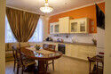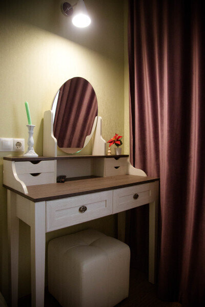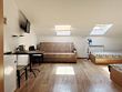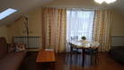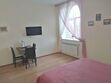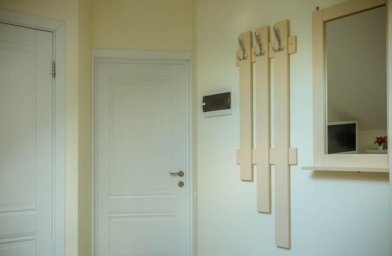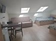 В одной спальне двуспальная кровать King-size 180*200 и раскладывающийся диван 130*190, во второй спальне двуспальная кровать 140*200. В каждой спальне свой телевизор. Санузел один, со входом из коридора. В этой квартире возможно размещение одного дополнительного места,— раскладной кровати. Находится на 3-ем мансардном этаже.