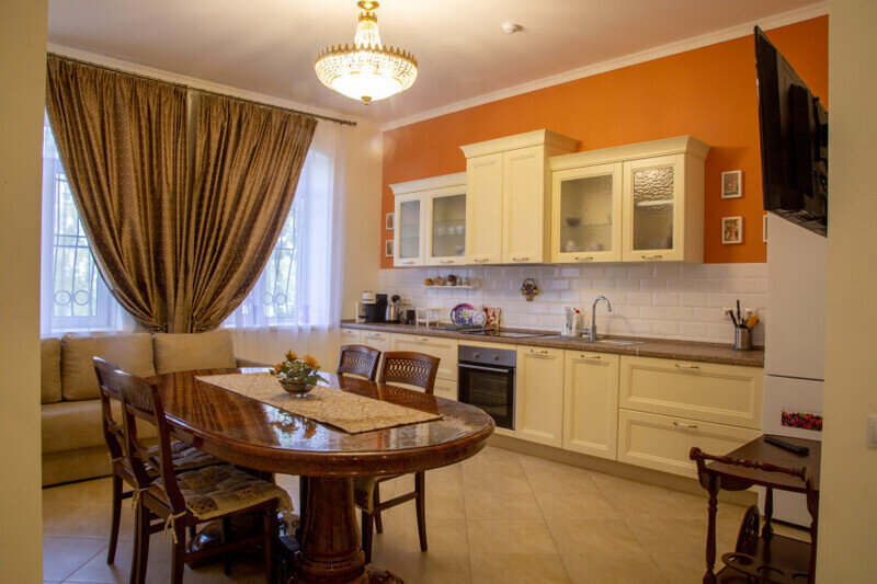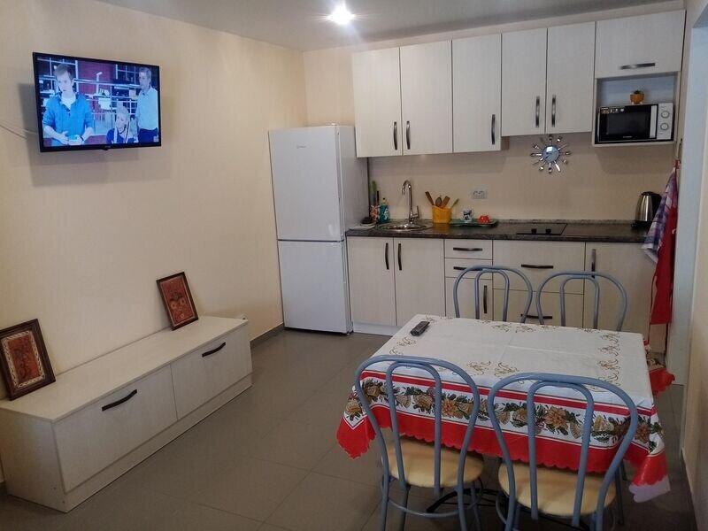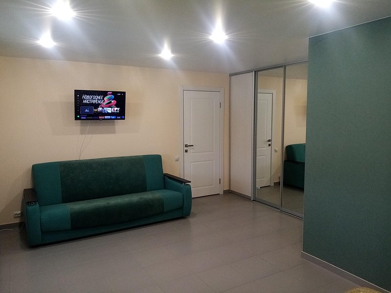 В спальне большой шкаф-купе и двуспальная кровать 160*200, телевизор. туалетный столик. В просторной гостиной собственная кухня со всей необходимой техникой и посудой для самостоятельного приготовления пищи, огромный обеденный стол, раскладывающийся диван 140*190, телевизор. В коридоре вместительный шкаф-купе. Квартира находится на 1-м этаже. Номер находится на первом этаже.